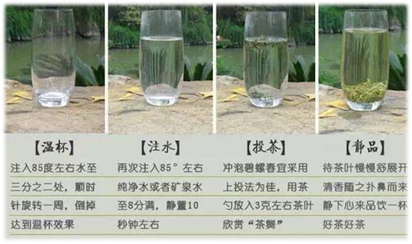 把碧螺春用开水冲泡后,没有加色素的碧螺春色泽比较柔和鲜艳,加色素的碧螺春看上去颜色发黑,发绿、发青、发暗。
